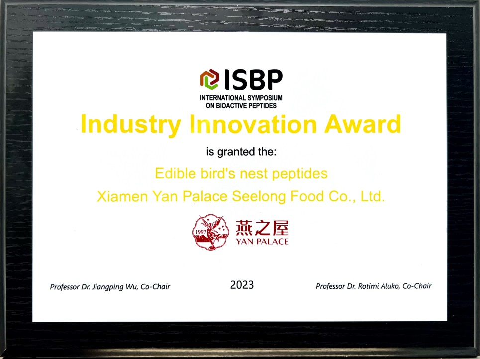 圖:燕之屋榮獲第三屆國際活性肽論壇燕窩肽——行業(yè)創(chuàng)新獎
