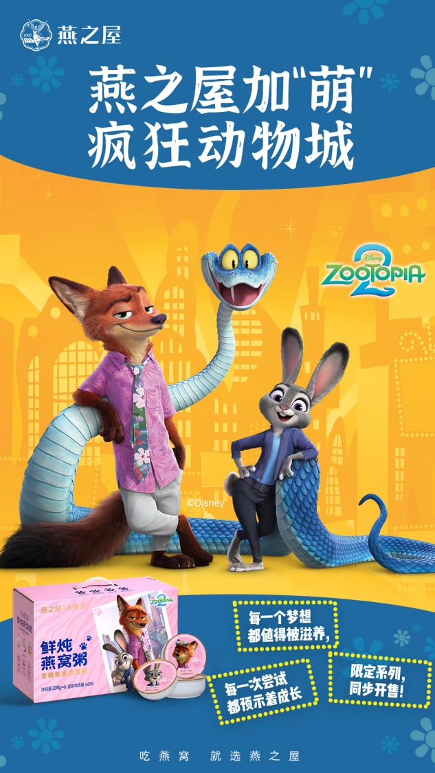 燕之屋聯(lián)合迪士尼《瘋狂動(dòng)物城2》甜蜜官宣,限定燕窩粥活力全開