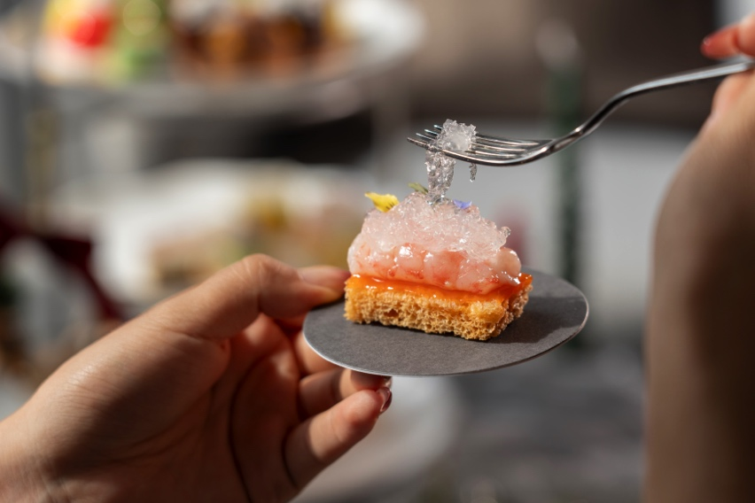 本次聯(lián)名下午茶精選燕之屋印尼核心產(chǎn)區(qū)燕窩,由廣州保利洲際酒店廚師團隊創(chuàng)意烹制,呈現(xiàn)一系列兼具視覺美感與味覺層次的燕窩雅點。燕窩鵝肝批配無花果醬,鵝脂豐潤與燕窩清雅相映成趣,無花果醬帶來甘美回韻;蟹肉龍蝦燕窩卷,海洋珍饈裹藏絲縷燕窩,鮮美與溫潤完美交融,共譜新章;燕窩甜蝦配薄脆,鮮嫩甜蝦邂逅彈潤燕窩,再搭配金黃薄脆,演繹出剛柔并濟的味覺哲學;牛油果燕窩球配青蘋果啫喱,口感層次豐厚,宛若自然韻律。四道匠心之作,譜寫咸點風雅,搭配圣誕栗子撻、圣誕草莓奶酪小點等甜品系列,營造甜蜜浪漫氛圍,勾勒節(jié)日詩篇。