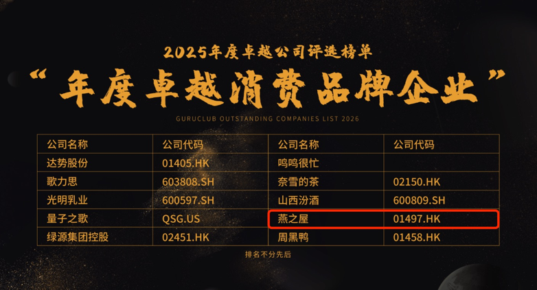 圖:2025年度卓越公司評(píng)選榜單——“年度卓越消費(fèi)品牌企業(yè)”